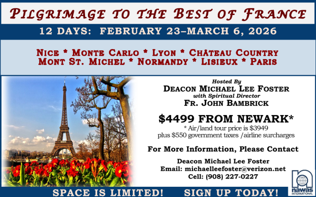 Join Deacon Michael Lee Foster and Fr. John Bambrick on a 12‑day pilgrimage through the most beautiful and sacred sites of France, February 23–March 6, 2026.